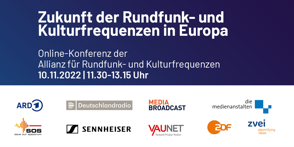 Die „Allianz für Rundfunk- und Kulturfrequenzen“, ist eine gemeinsame Initiative von ARD, Deutschlandradio, Media Broadcast, den Medienanstalten, SOS – Save Our Spectrum, Sennheiser, VAUNET, ZDF und des Verbands der Elektro- und Digitalindustrie ZVEI. Sie setzt sich, insbesondere bei den politischen Entscheiderinnen und Entscheidern, für ein notwendiges Frequenzspektrum ein, um damit die Vielfalt von Rundfunk und Kultur und eine Zukunftsperspektive zu sichern.