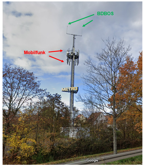 Das BOS Funksystem auf Basis TETRA nutzt Rundstrahlantennen, das ermöglicht eine Abdeckung 360 Grad. Der 2G/3G/4G Mobilfunk hingegen nutzt Sektorantennen mit einer Abdeckung von jeweils 120 Grad.